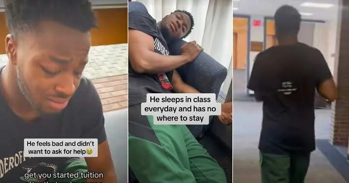 “I know I see you here every day you’re working hard. so I just want to you know come here and try to help you. so l’m gonna try to get you a dorm, try to settle you in, I hate that you’re sleeping in the classrooms or in the lobby.
