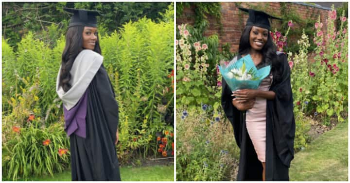 The young lady took to Twitter to celebrate the feat as she released snaps sporting her graduation robe.