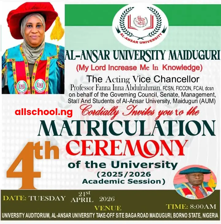 Al-Ansar University Matriculation Ceremony Date 2025/2026 academic session has been announced.