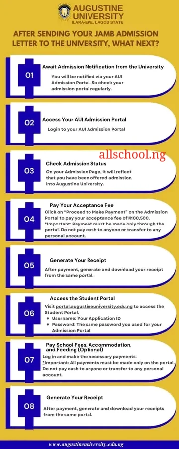 On your Admission Page, it will reflect that you have been offered admission. into Augustine University. - Pay Your Acceptance Fee