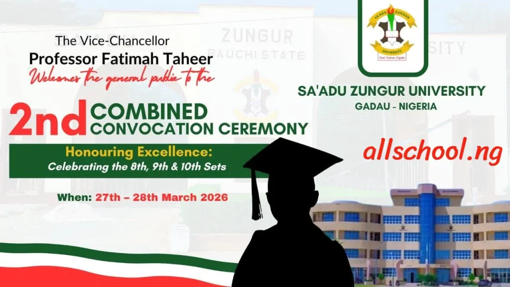 Sa’adu Zungur University, Gadau, Bauchi State warmly invites the public to its 2nd Combined Convocation Ceremony, celebrating the achievements of the 8th, 9th, and 10th graduating sets.