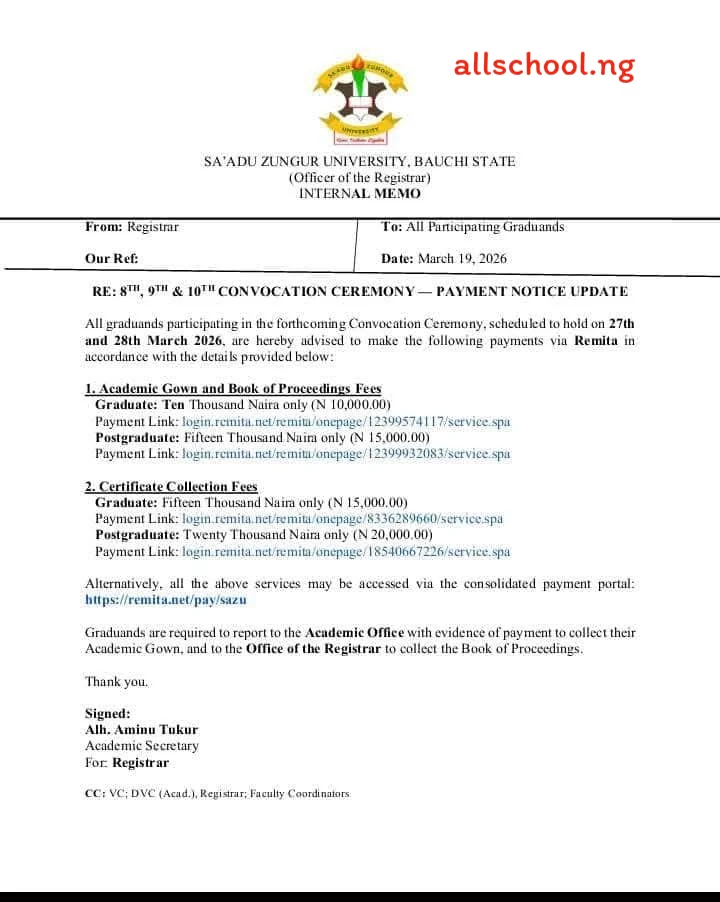 LATEST UPDATE: SAZU Convocation Ceremony Payment Notice has been Released
