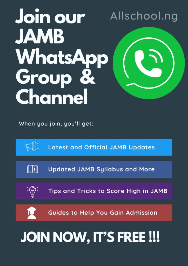 But before we proceed, If you haven’t still joined the ALLSCHOOL JAMB Lesson, you making a very great mistake.