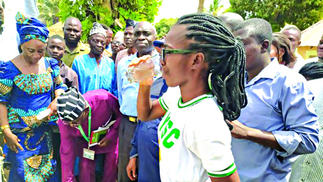 Iyanuoluwa, who is currently serving in the state, pulled up resources and erected a borehole in the area that has experienced water shortage for many years. The project was commissioned recently and the community gifted her 80 tubers of yam, which was what they had, as a token of appreciation.