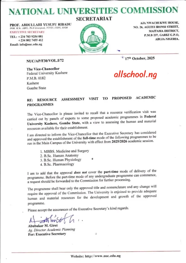 FUKASHERE Secures NUC Approval for New Academic Programmes.