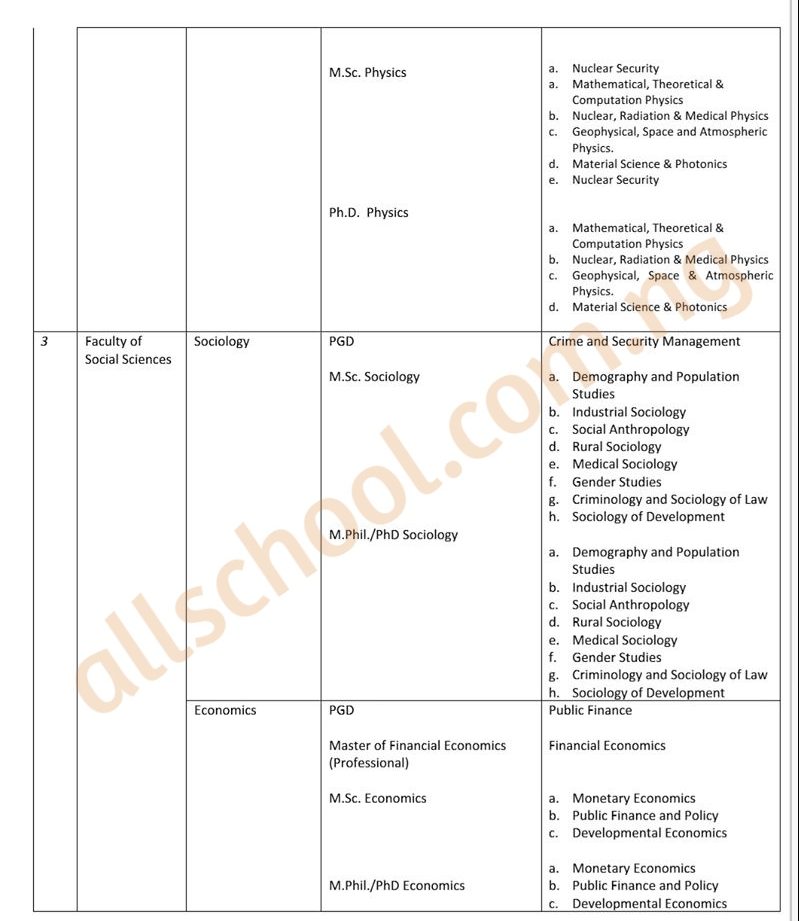 Please check the images below to see the breakdown of FULAFIA Postgraduate programmes. You can click on the image for better view.