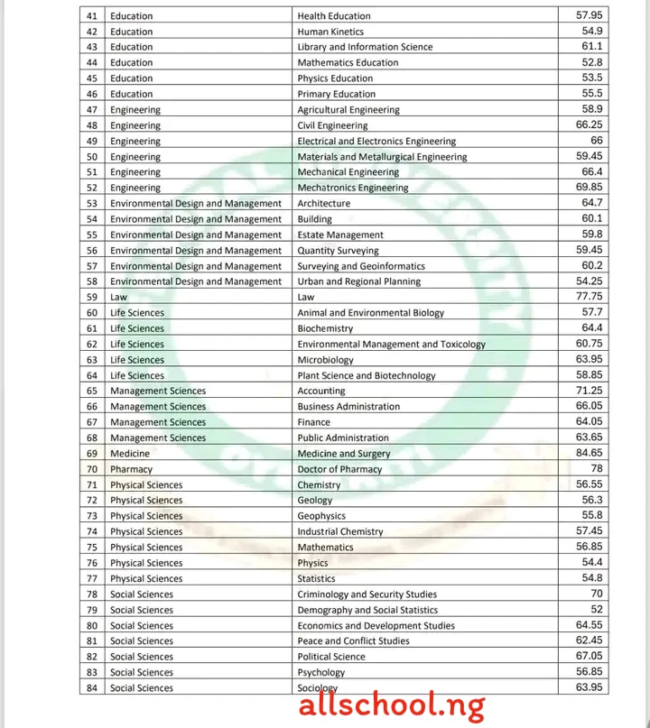Post utme admission cut off for each coures