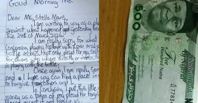 A student’s apology letter to a teacher went viral after he admitted to misbehaving in class and included a ₦500 note as a token of apology, sparking mixed reactions online about his sincerity.