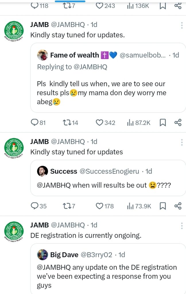 In response to these challenges, JAMB engaged with candidates via its official page.
