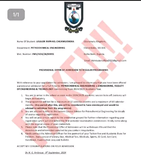 - Verify Official Communications: Always check your admission status through our official university website and Jamb Official Website . We do not send admission letters via social media or unverified email addresses.