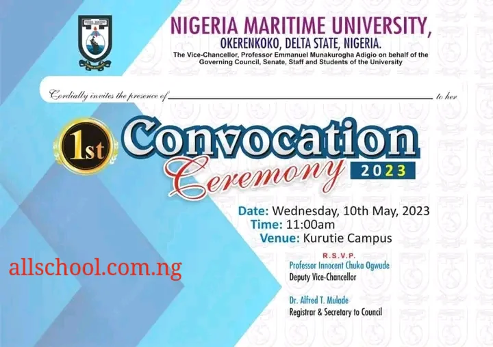 The Management of Nigeria Maritime University cordially invites the General Public to its 1st convocation ceremony of the institution scheduled to hold as follows: