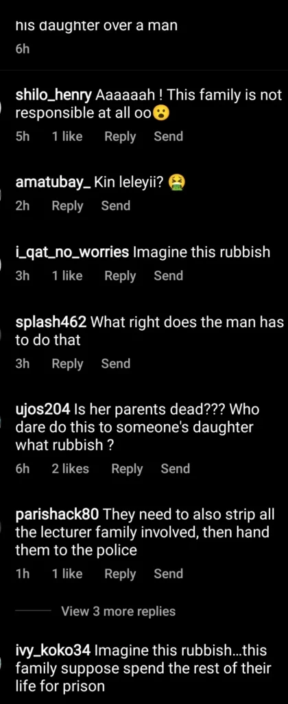 CURSORY: A lecturer and his family has left netizens shocked after he and his children beat up and stripped a girl naked for fighting with his daughter.