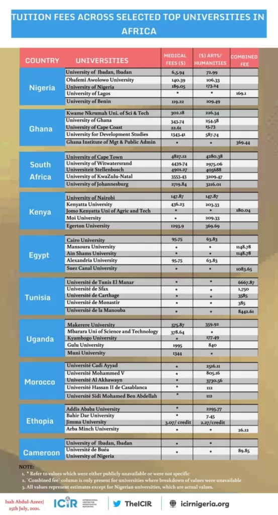 STUDENTS of the best public universities in Nigeria pay lower amounts for tuition when compared to those in other top African universities.