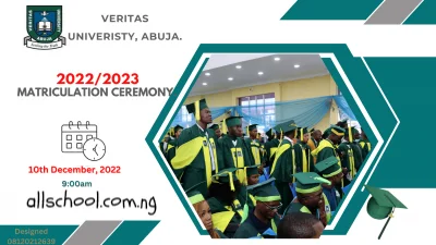 The management of Veritas University, Abuja (VERITAS) cordially invites the general public for the 2022/2023 Matriculation Ceremony of the university.